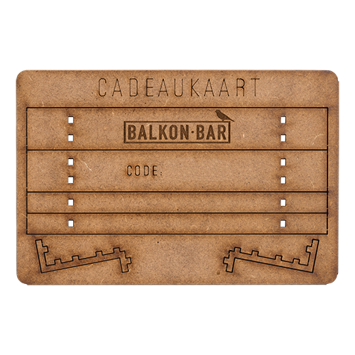Surprenez vos amis ou votre famille en offrant une carte cadeau Balkonbar au design d’un mini Balkonbar. Vous êtes libre de choisir le montant de la carte cadeau.